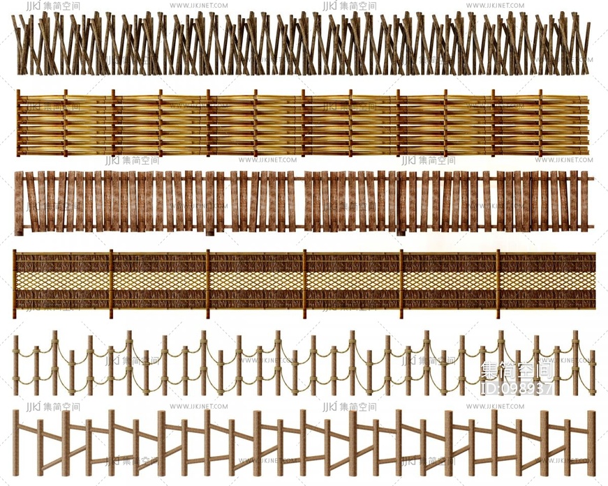 自然风木篱笆围栏,围栏院墙篱笆墙 3d模型下载 [模型ID:98937]