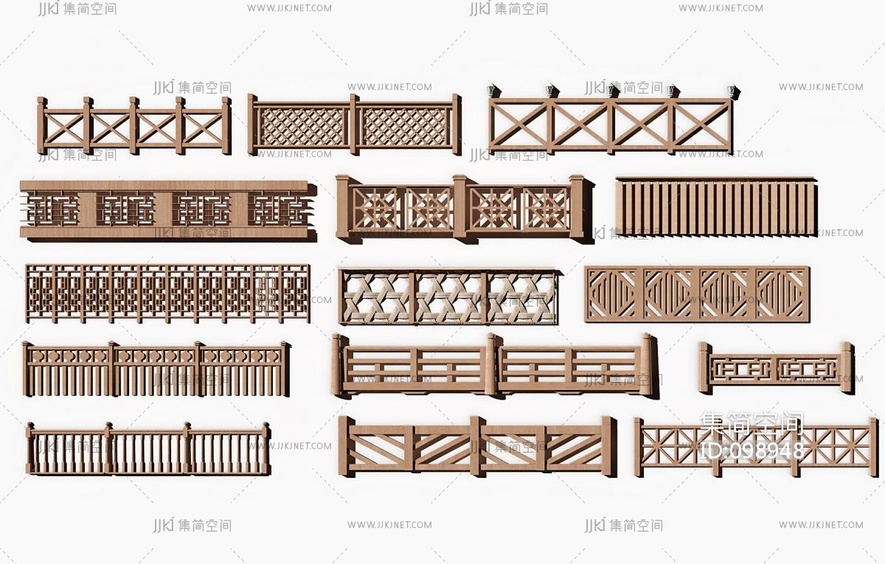 中式实木护栏扶手 3d模型下载 [模型ID:98948]