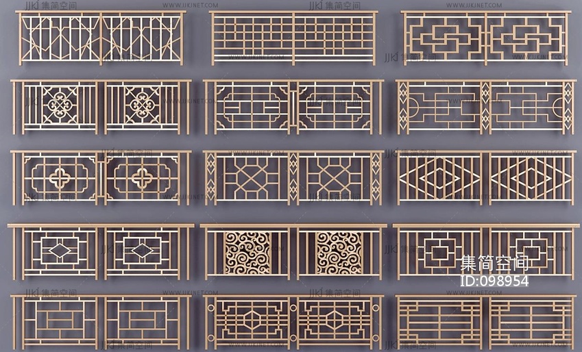 新中式金属栏杆护栏扶手 3d模型下载 [模型ID:98954]