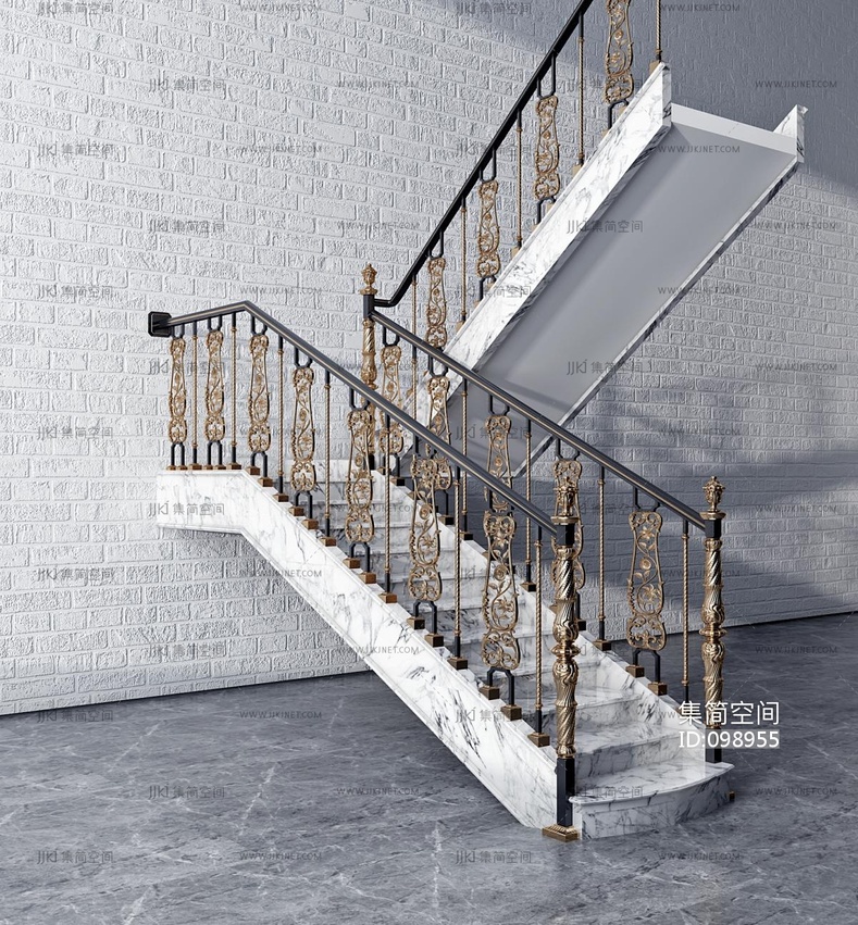 简欧法式金属雕花楼梯护栏 3d模型下载 [模型ID:98955]