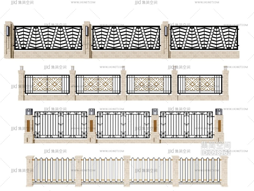 欧式新中式围墙铁艺围栏,院墙,护栏 3d模型下载 [模型ID:98962]