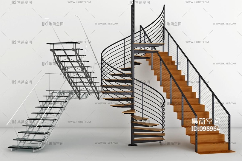 现代工业风,铁艺钢架旋转楼梯,组合 3d模型下载 [模型ID:98964]