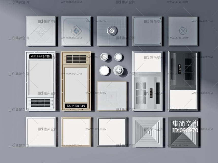 现代风暖机,暖风机,铝扣板排风扇筒灯换气扇 3d模型下载 [模型ID:98970]
