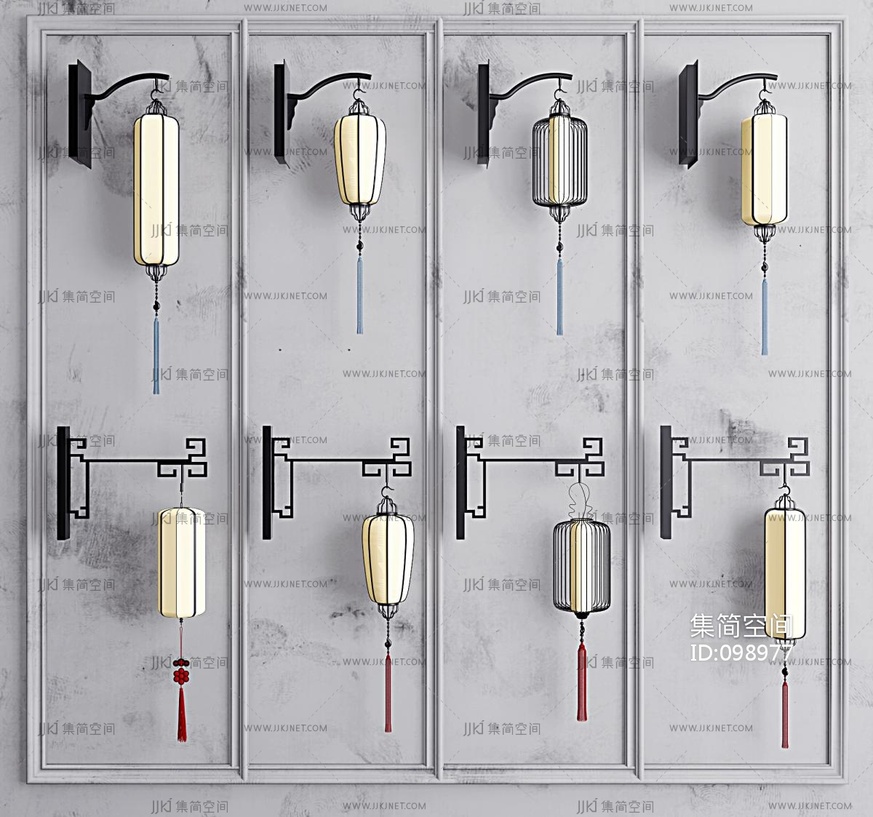 新中式灯笼壁灯 3d模型下载 [模型ID:98977]