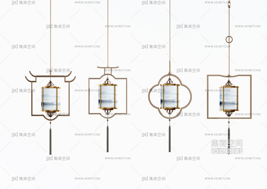 新中式金属灯笼小吊灯 3d模型下载 [模型ID:98981]