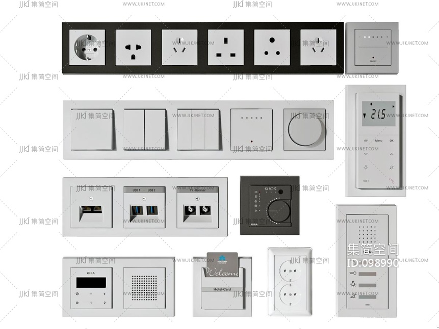 现代开关插座门禁卡插卡器 3d模型下载 [模型ID:98990]