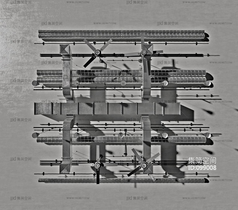 工业风通风管道吊扇吊灯 3d模型下载 [模型ID:99008]