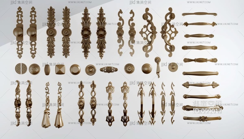 简欧金属柜门把手门拉手 3d模型下载 [模型ID:99017]