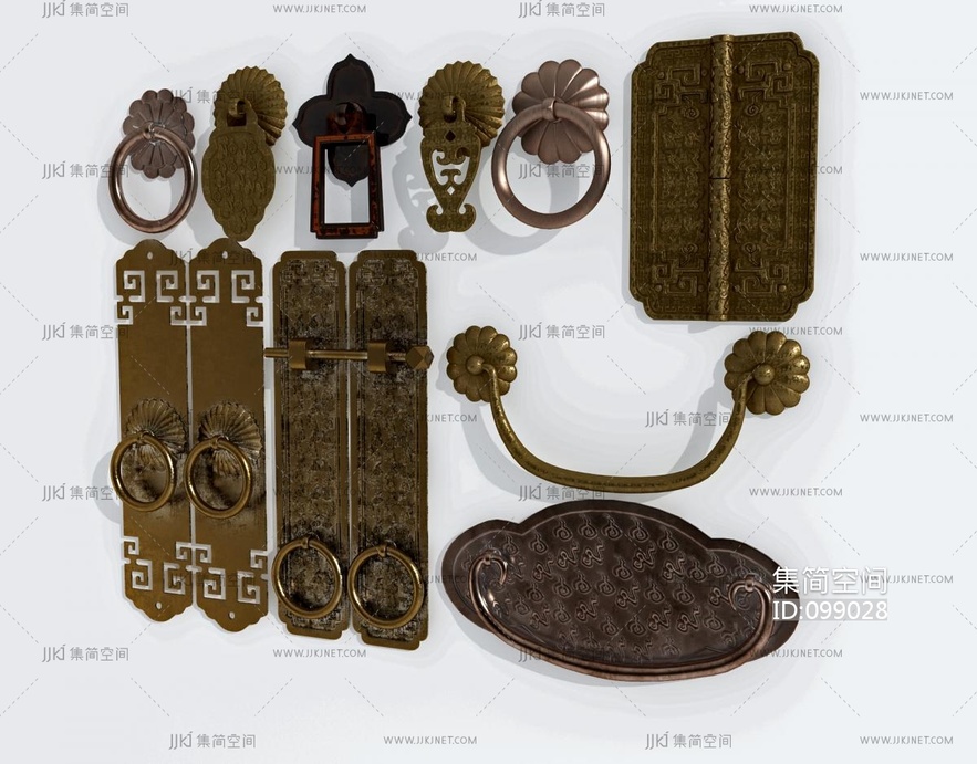 中式金属门拉手折页,门拉手,五金件 3d模型下载 [模型ID:99028]