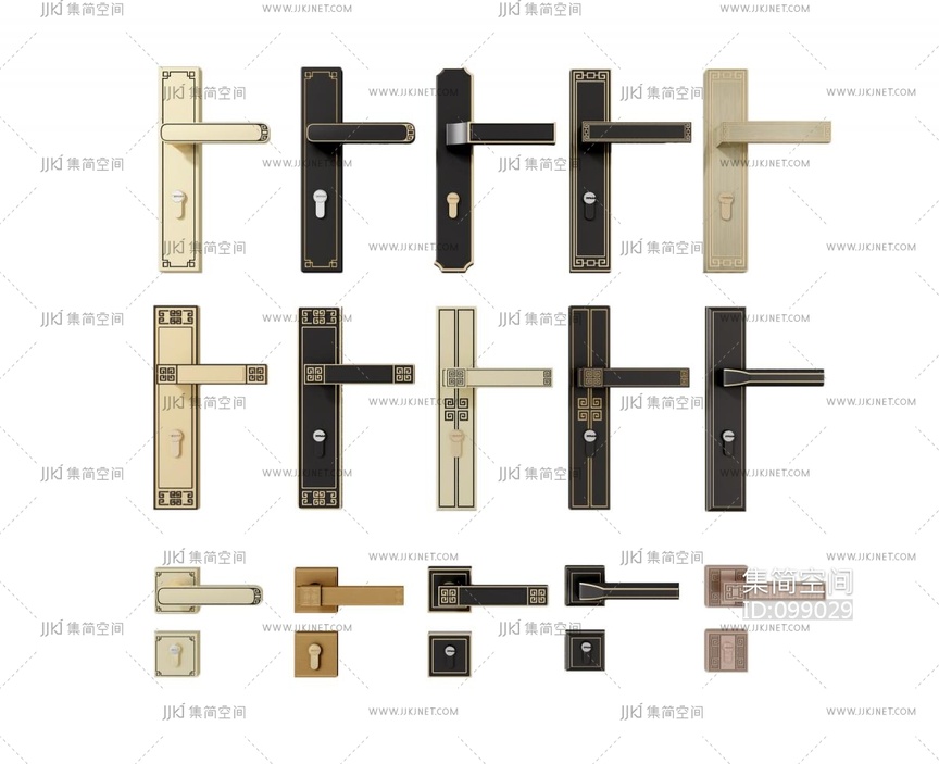 新中式门锁门把手,拉手 3d模型下载 [模型ID:99029]