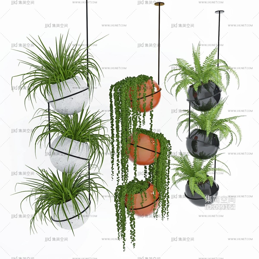 现代吊篮绿植盆栽 3d模型下载 [模型ID:99164]