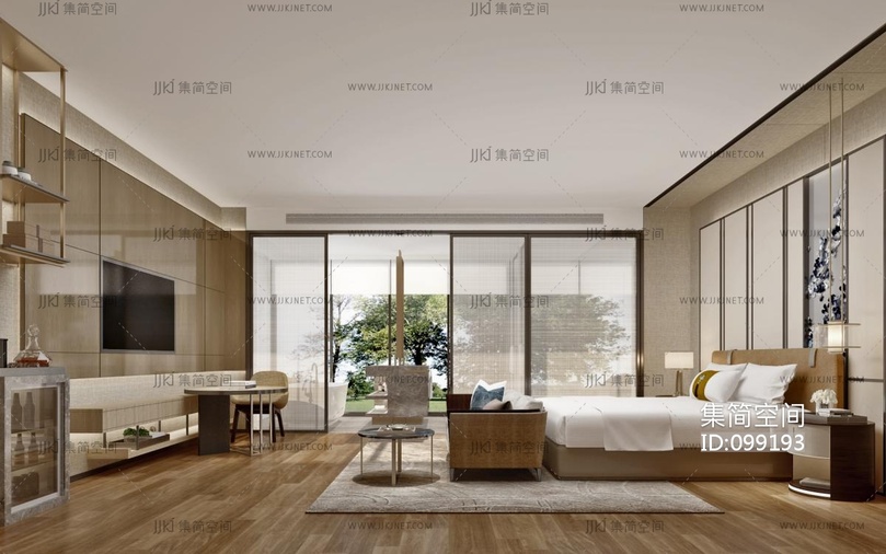 新中式轻奢酒店客房, 3d模型下载 [模型ID:99193]