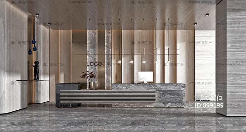 现代办公室前台大厅接待台 3d模型下载 [模型ID:99199]