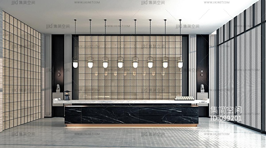 新中式酒店前台大厅 3d模型下载