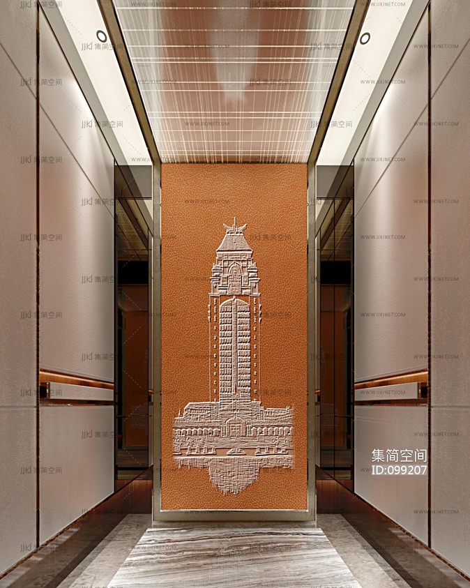 新中式酒店电梯轿厢 3d模型下载 [模型ID:99207]