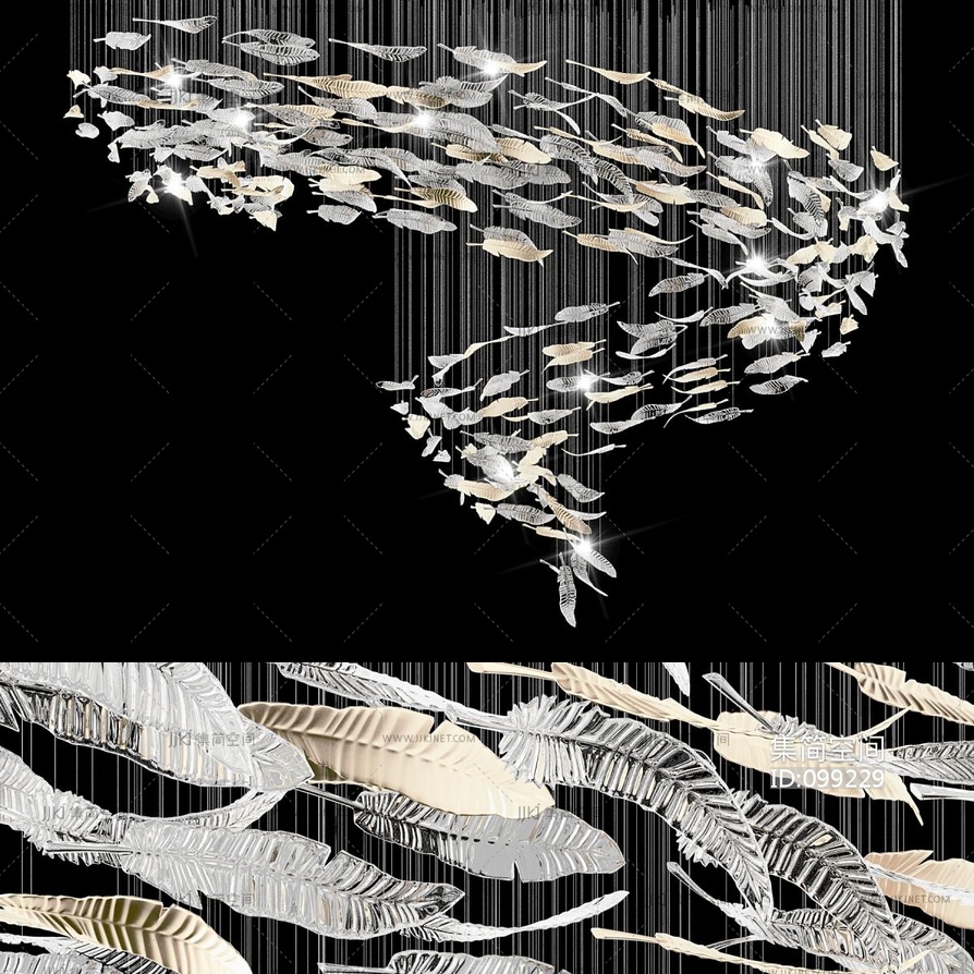 现代羽毛水晶树叶装饰吊灯 3d模型下载 [模型ID:99229]