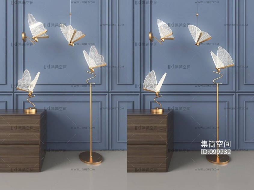 现代轻奢蝴蝶壁灯台灯落地灯 3d模型下载 [模型ID:99232]