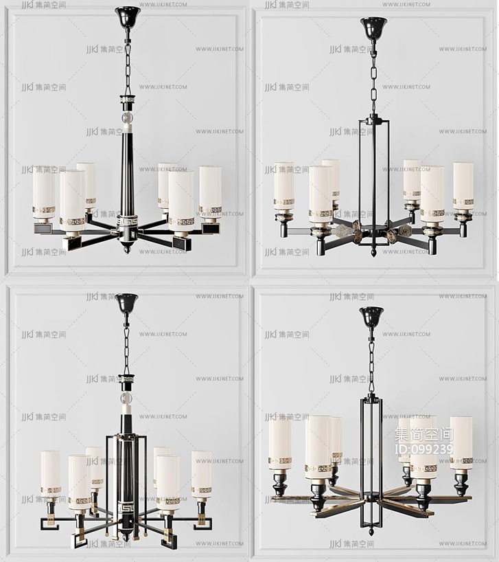 新中式轻奢烛台铁艺吊灯 3d模型下载 [模型ID:99239]