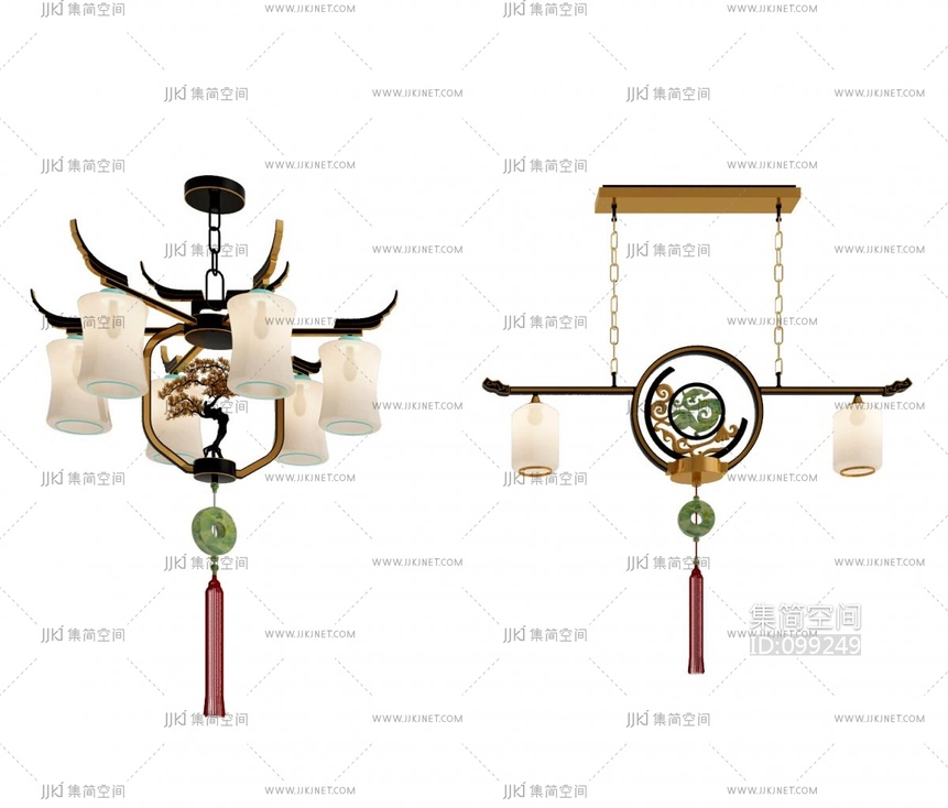 新中式流苏多头吊灯 3d模型下载 [模型ID:99249]