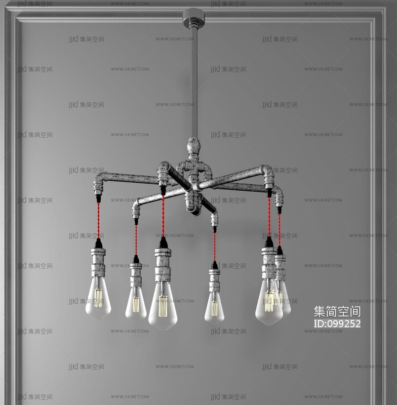 工业风钢管多头吊灯 3d模型下载 [模型ID:99252]