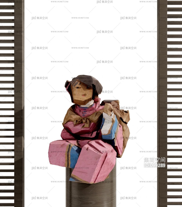 现代日式朱铭彩绘木雕,人物雕塑摆件 3d模型下载 [模型ID:99289]