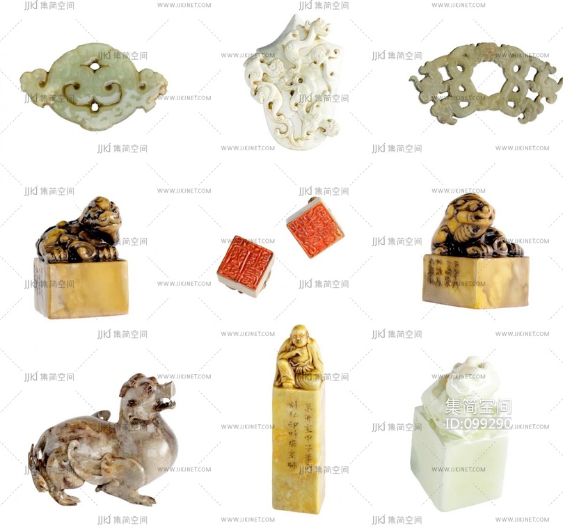 新中式玉玺,玉佩,雕塑玉石印章古董摆件 3d模型下载 [模型ID:99290]