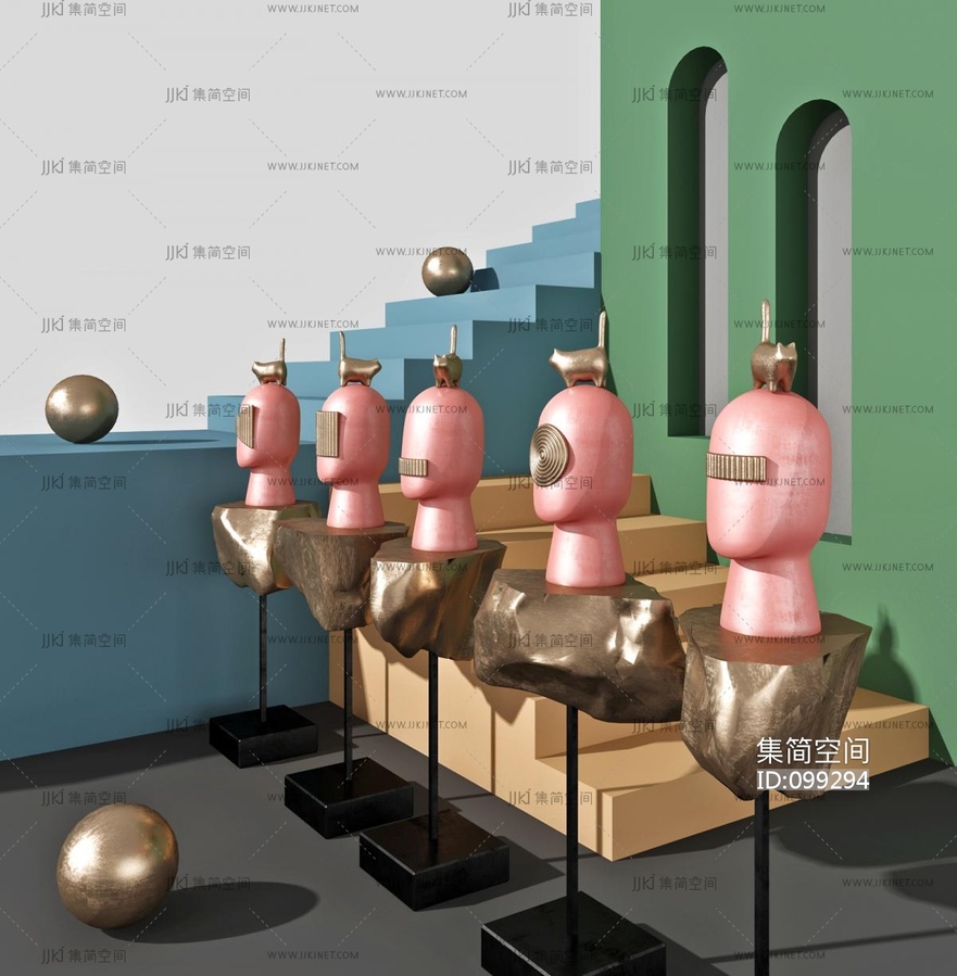 现代创意人头雕塑摆件 3d模型下载 [模型ID:99294]