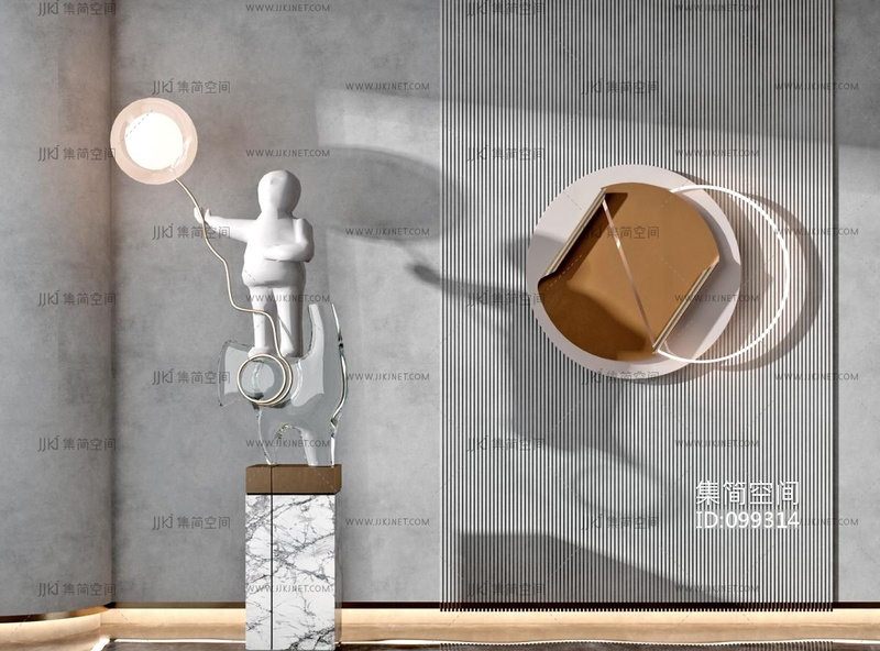 现代抽象人物雕塑,墙饰,落地灯 3d模型下载 [模型ID:99314]