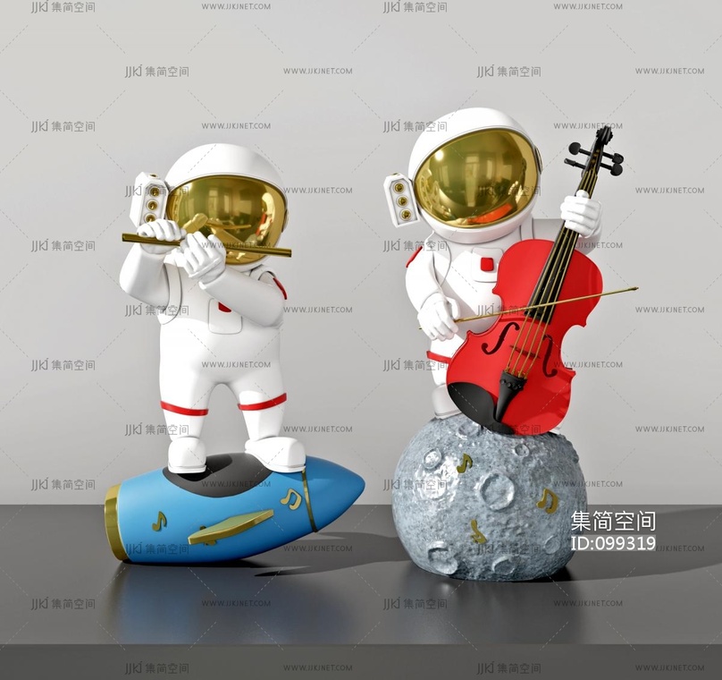 现代宇航员,音乐拉小提起人物雕像,雕塑摆件 3d模型下载 [模型ID:99319]