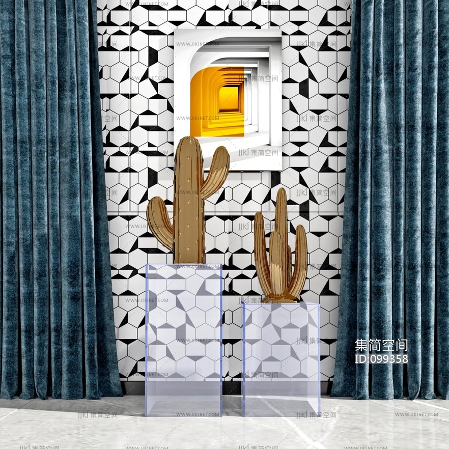 现代亚克力透明仙人掌雕塑 3d模型下载 [模型ID:99358]