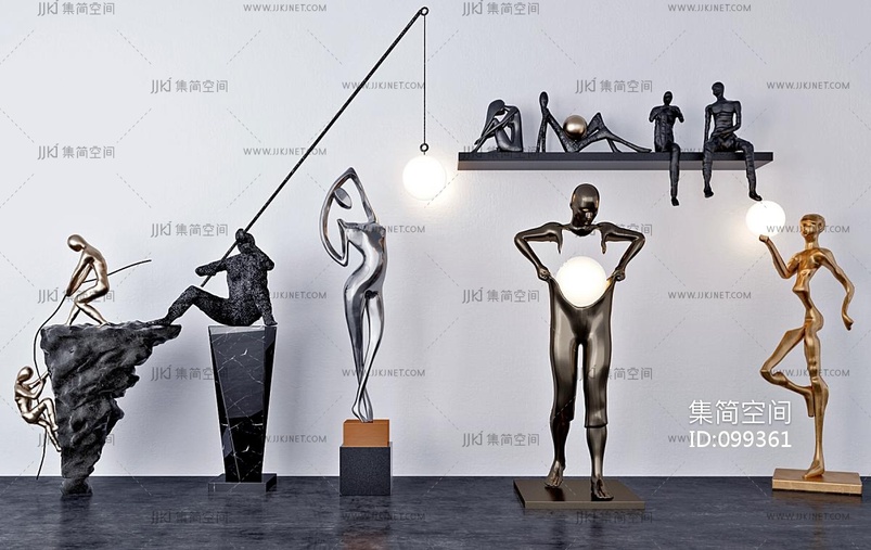 现代抽象金属人物雕塑 3d模型下载 [模型ID:99361]