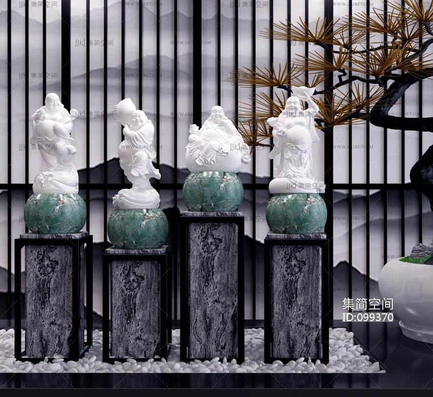 新中式雕塑摆件3D模型3d模型下载