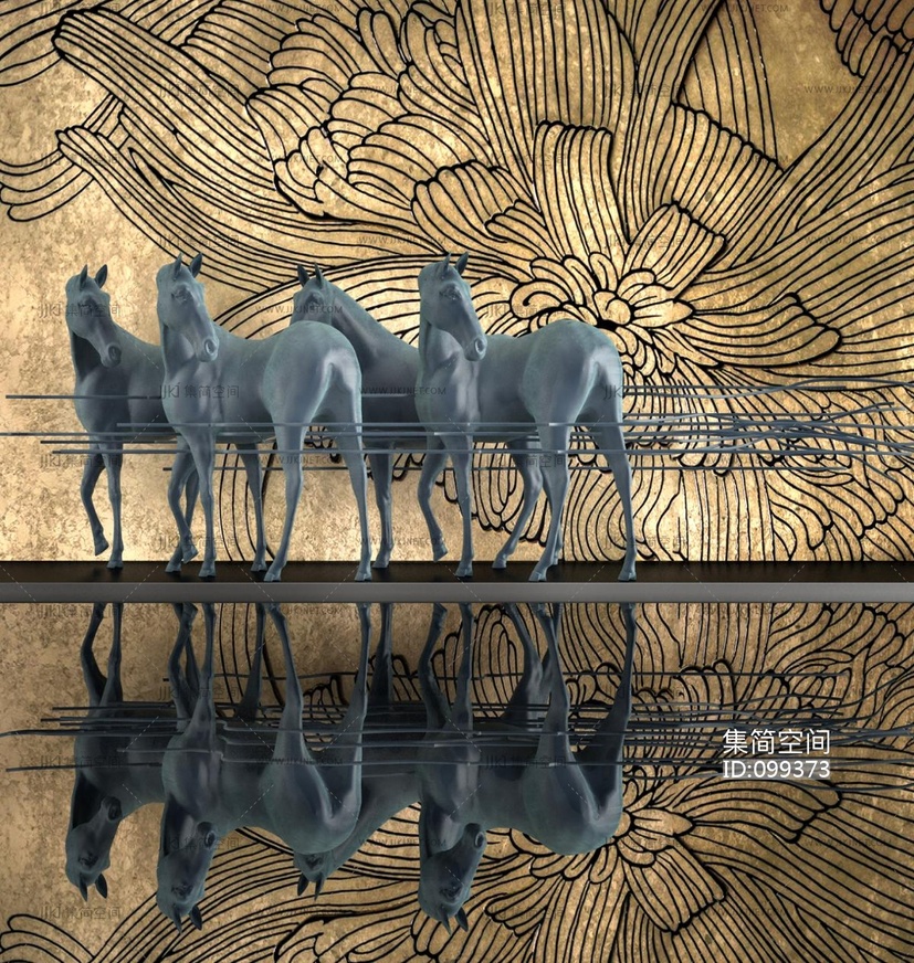 新中式石头马雕塑 3d模型下载 [模型ID:99373]