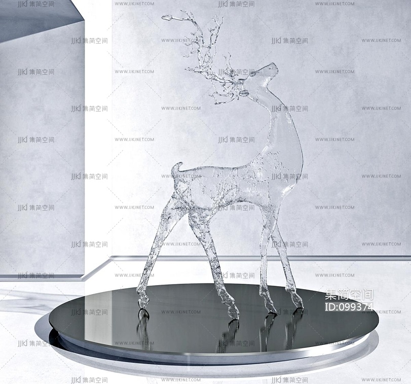 现代水晶鹿雕塑, 3d模型下载 [模型ID:99374]