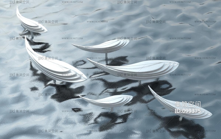 现代金属抽象鱼雕塑摆件,水景 3d模型下载 [模型ID:99375]