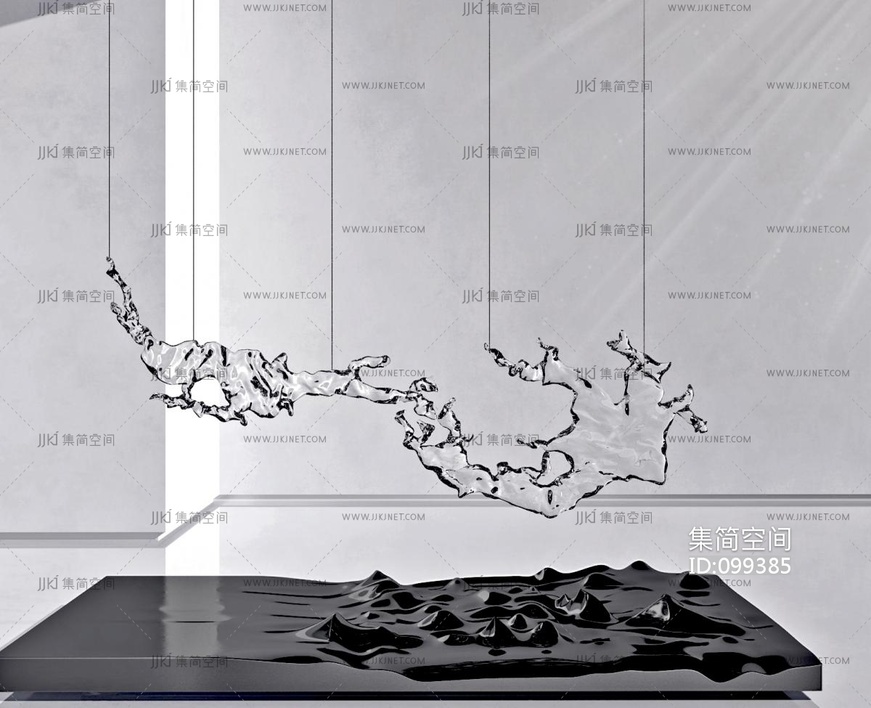 现代抽象水晶,水滴装置雕塑水景吊灯 3d模型下载 [模型ID:99385]