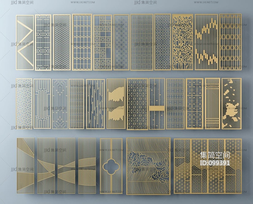 新中式屏风隔断花格 3d模型下载 [模型ID:99391]
