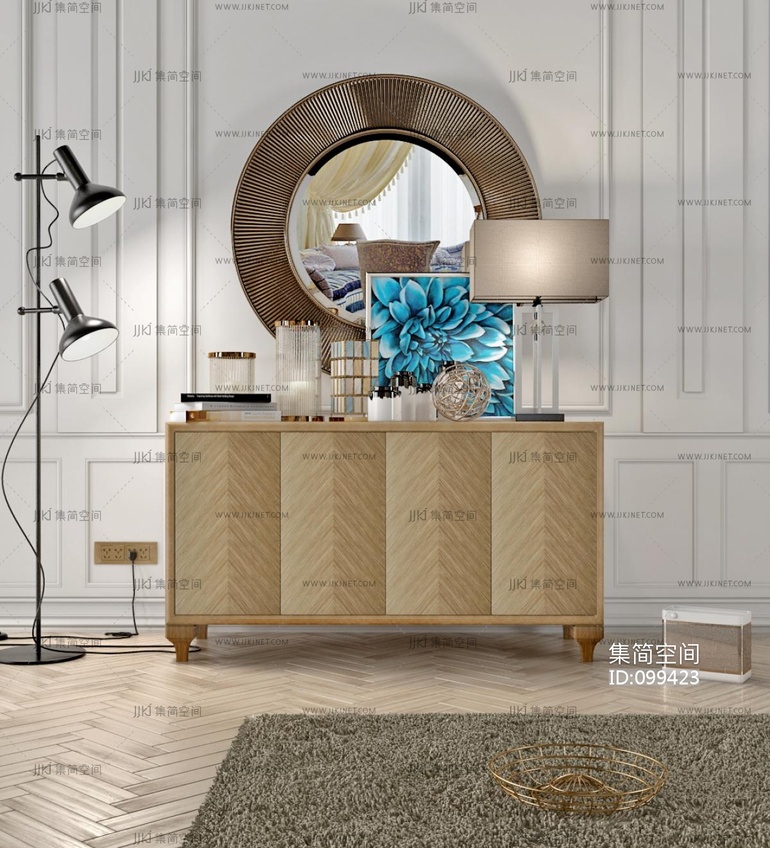 美式玄关柜摆台装饰画3D模型下载3d模型下载