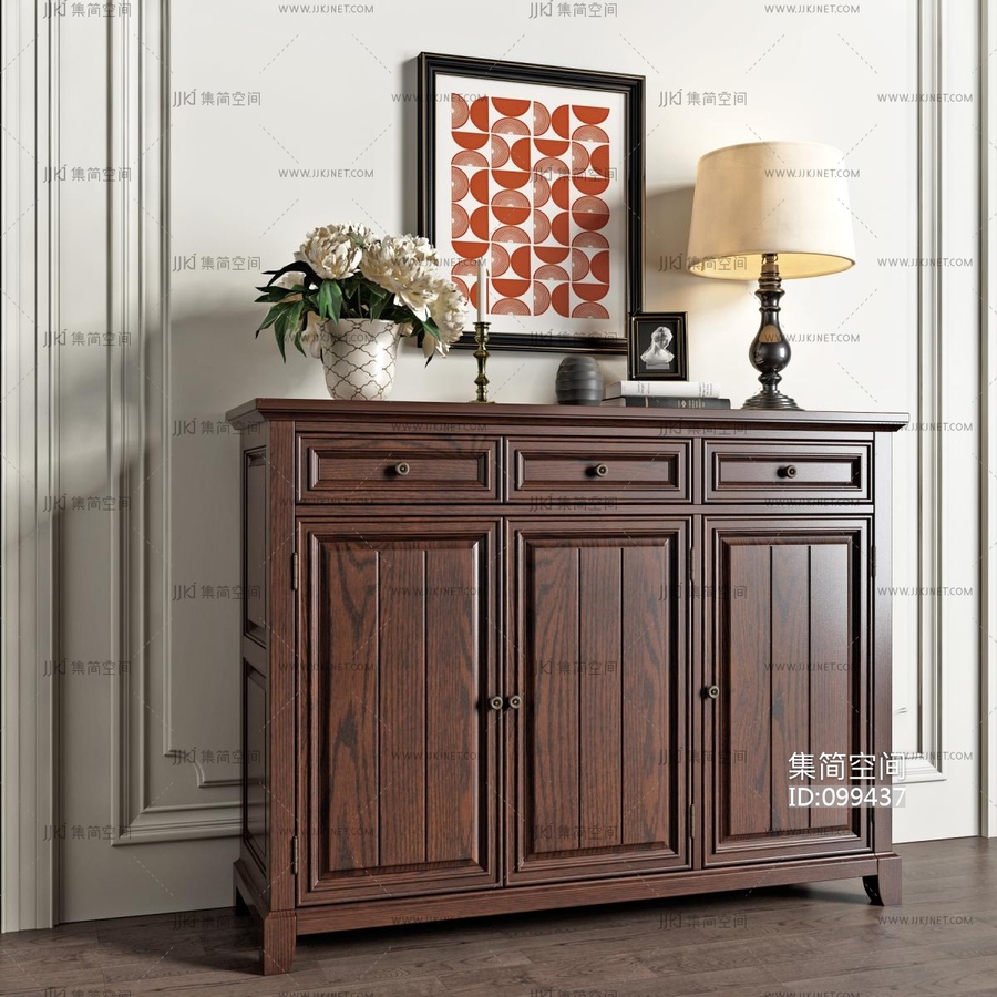 美式玄关柜摆台装饰画3D模型下载3d模型下载