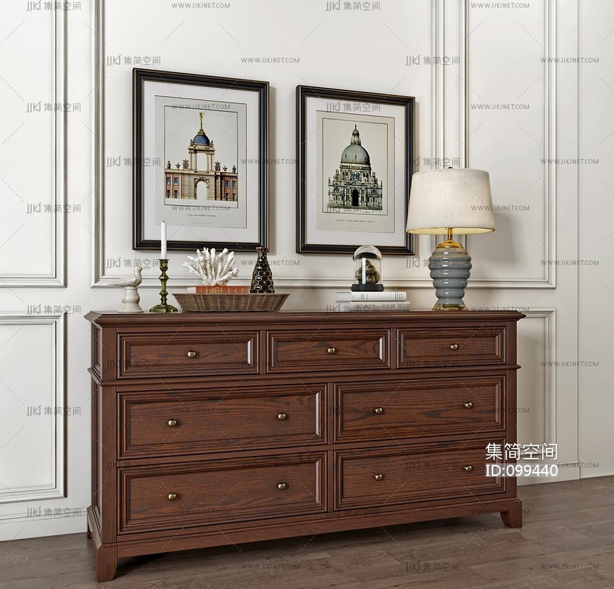美式玄关柜摆台装饰画3D模型下载3d模型下载