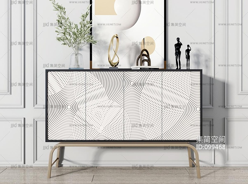 现代边柜,花瓶摆件 3d模型下载 [模型ID:99468]
