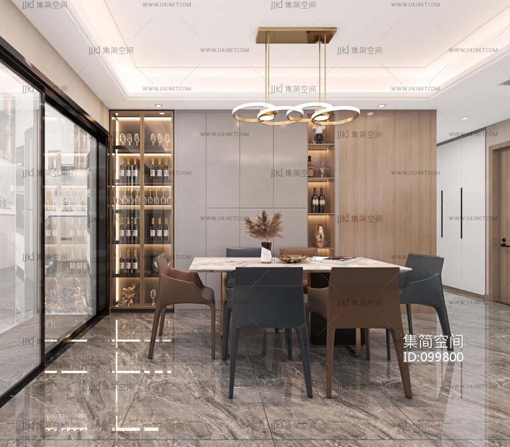 现代轻奢客餐厅 (1) 3d模型下载 [模型ID:99800]