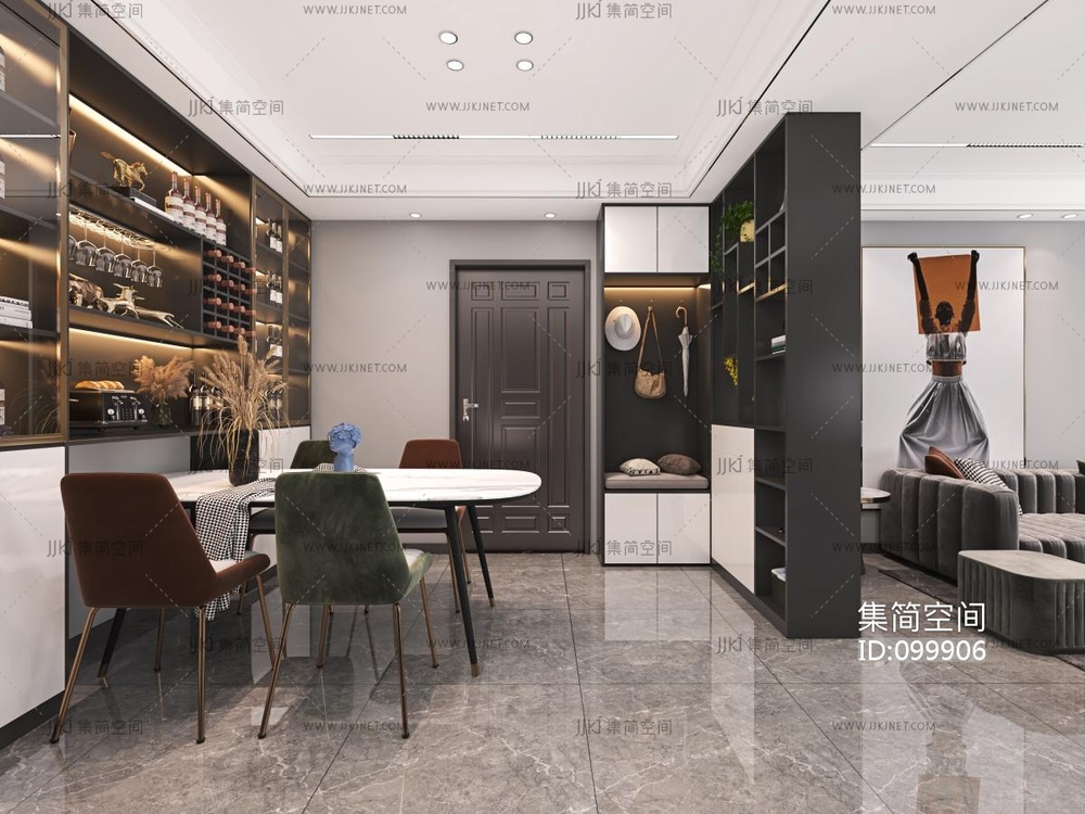 现代轻奢客厅餐厅 3d模型下载 [模型ID:99906]