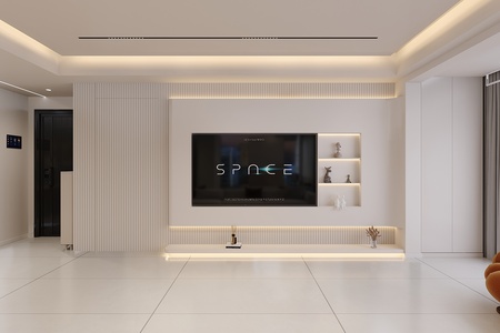 奶油风电视背景墙 弧形造型 隐形门 悬浮吊顶 3d模型下载__模型ID:143867