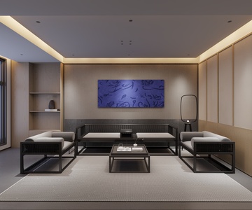 现代中式客餐厅,新中式沙发罗汉床茶几