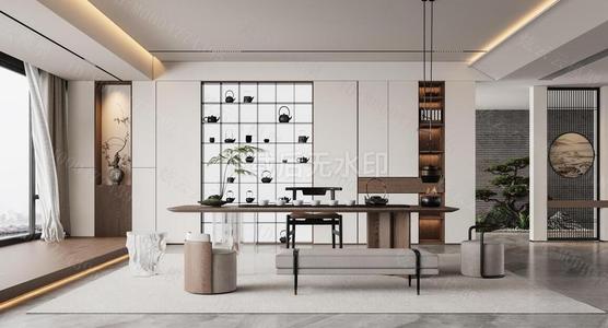 茶室,新中式茶室,茶桌椅茶台 3d模型下载