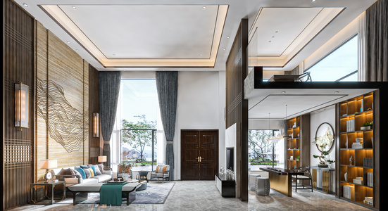 0新中式景观露台阳台庭院景观,水景,石头桌椅