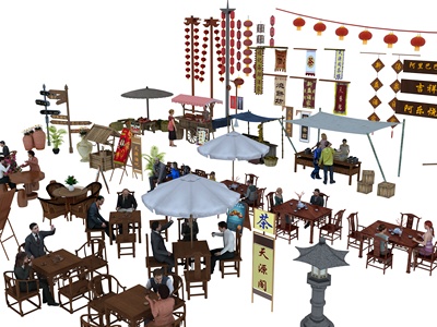 中式地摊,餐桌椅店招招牌,街区,美陈