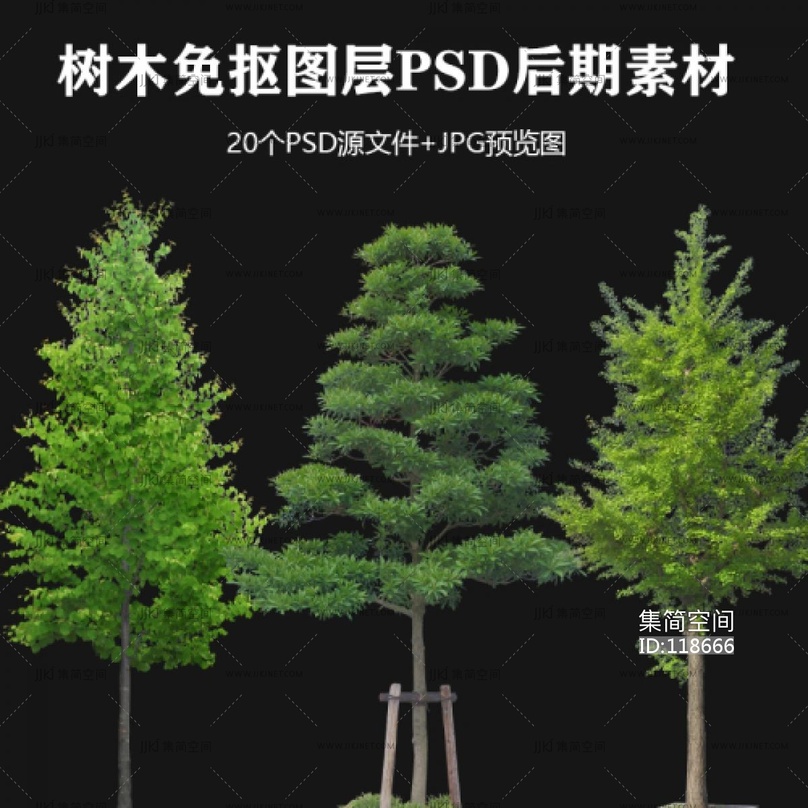 一组树木的免抠素材单独PSD文件