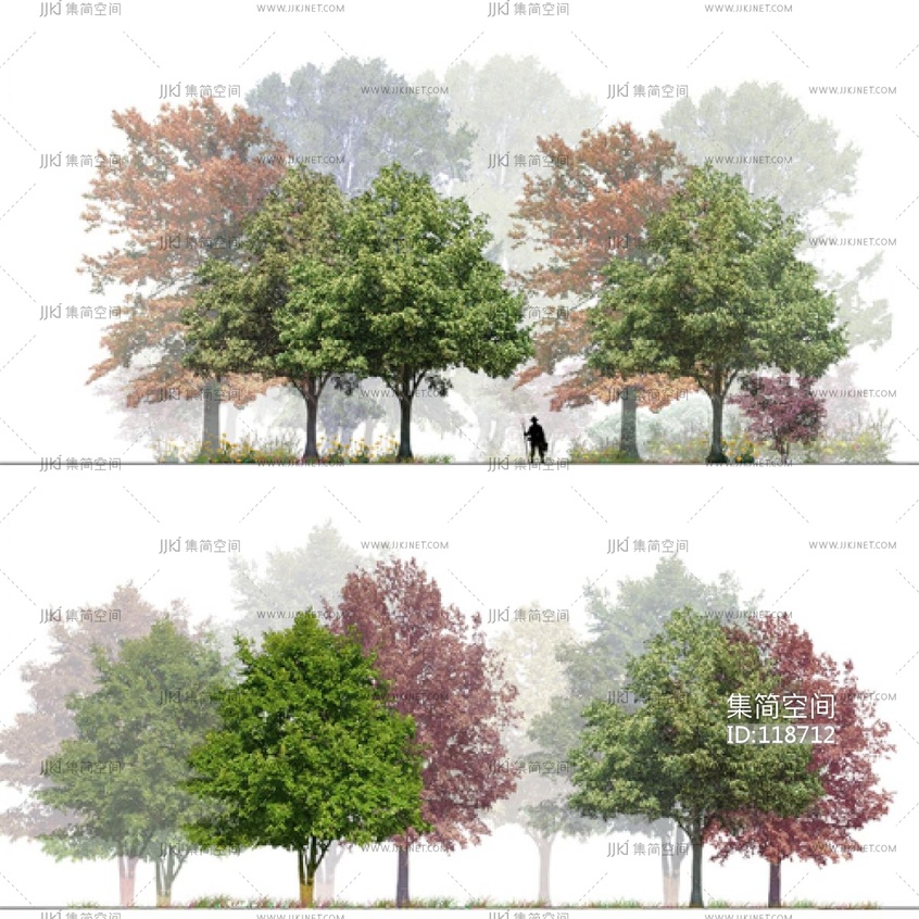 免抠树木配景景观树丛贴图